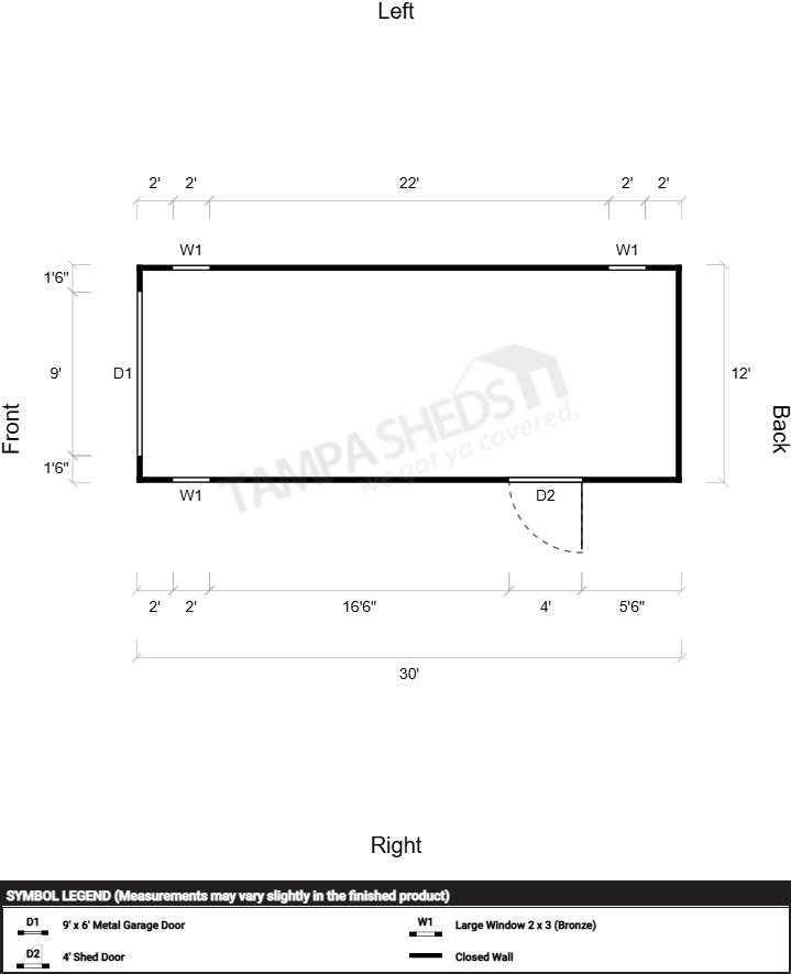 Doors Type: 9′ X 6′ GARAGE DOOR AND 4′ STANDARD