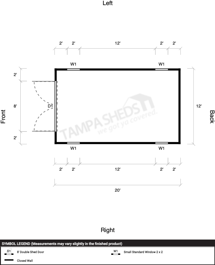 | Windows | Small Standard Window 2 x 2, Color: Mill Finish x4 |