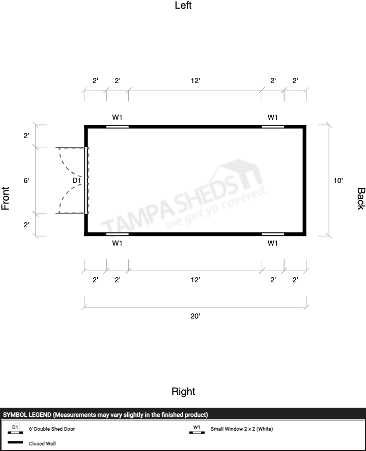 | Doors | 6' Double Shed Door |